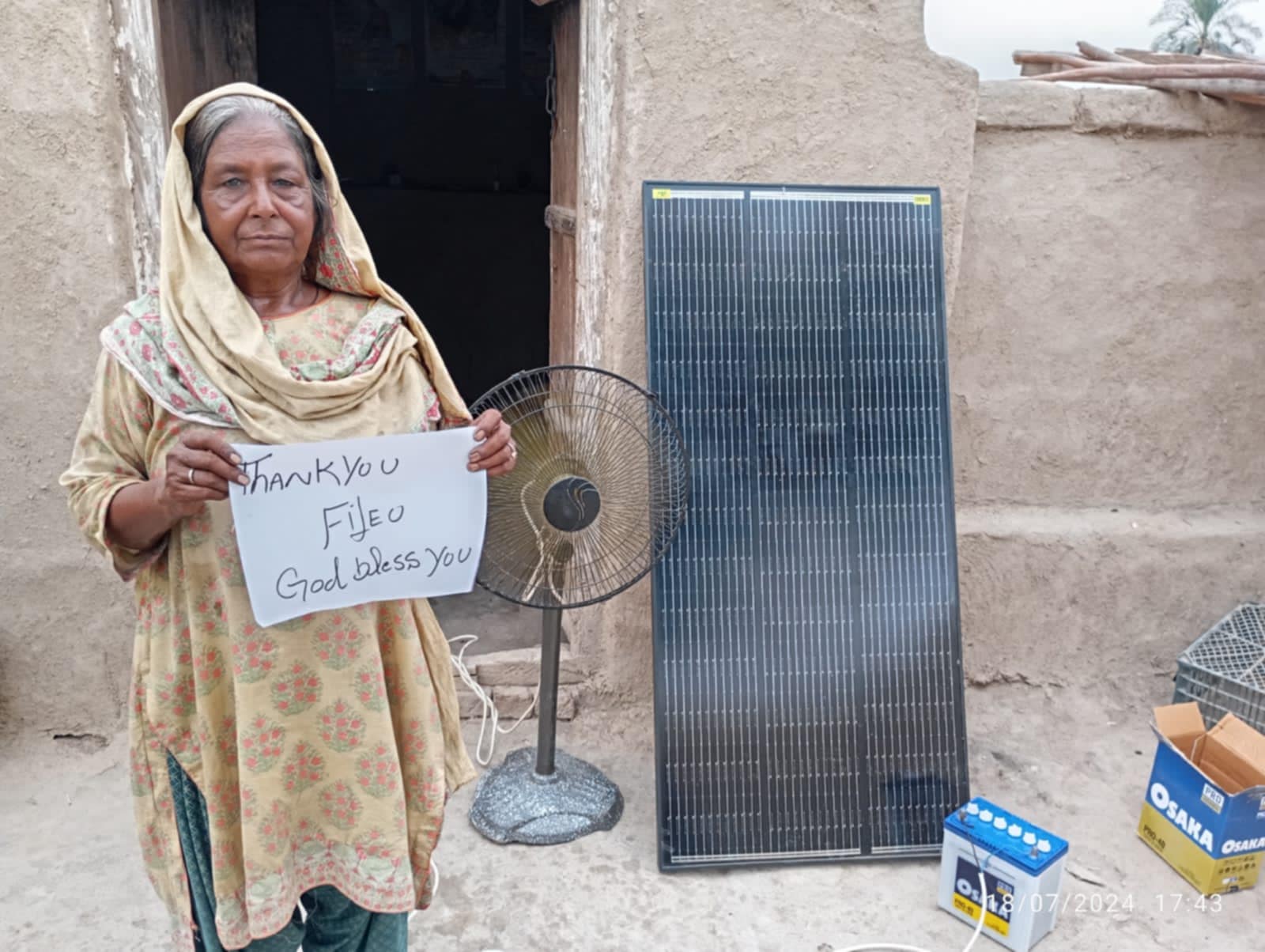 DZIĘKUJEMY DARCZYŃCOM NASZEJ FUNDACJI „FILEO” ZA KOLEJNĄ POMOC DLA UBOGIEJ WDOWY♥️TYM RAZEM ZAKUPIONY ZOSTAŁ PANEL SŁONECZNY, BATERIA I WENTYLATOR NIEZBĘDNE DO FUNKCJONOWANIA PODCZAS FALI UPAŁÓW W PAKISTANIE