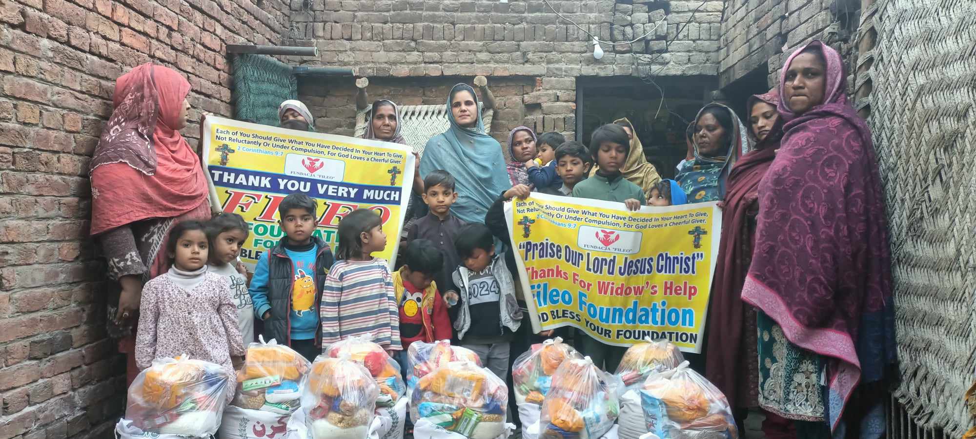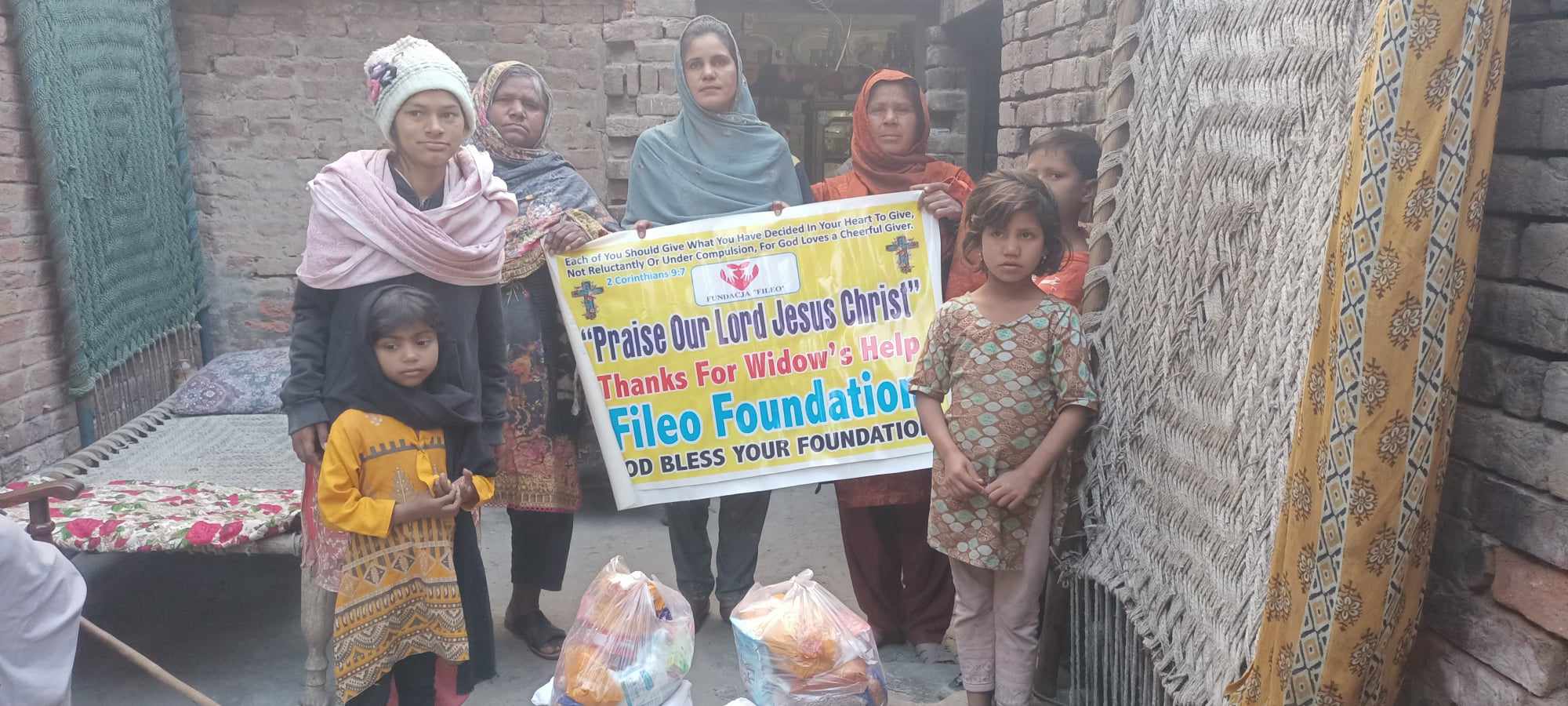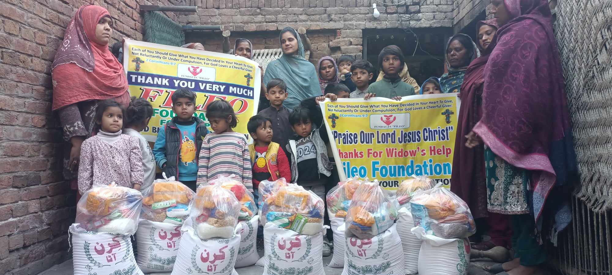 Wszystkie dzieci na zdjęciach łączą dwa nieszczęścia: po pierwsze – są one tak biedne, że częstokroć nawet jeden posiłek dziennie jest tym, czego najbardziej pragną. Drugim nieszczęściem jest to, że żadne z przedstawionych tu dzieci nie ma ojca, który częstokroć był jedynym żywicielem rodziny. Niektóre z nich straciły tatę tak dawno, że nawet go nie pamiętają, a matki w skrajnej biedzie i rozpaczy sprzedały już sprzęt gospodarstwa domowego lub zostały wyrzucone z domów z powodu niemożliwości opłacenia rachunków. Inne zostały półsierotami niedawno i ich dom nosi jeszcze znamiona normalności, ale ich sytuacja życiowa pogarsza się z dnia na dzień i wraz z matkami są nią przerażone – zwłaszcza gdy nie są już maluchami i wiedzą, że czeka je walka o przetrwanie.W Pakistanie sytuacja chrześcijańskich kobiet pozbawionych męża jest skrajnie trudna. Utrata męża wiąże się dla nich z jeszcze większą walką o podstawowe prawa i godność. Również walka z ubóstwem jest niewyobrażalnie ciężka. Kobiety, które straciły mężów w młodym wieku, obarczone są też wielką odpowiedzialnością za dzieci i stawianiem czoła dyskryminacji w życiu społecznym. Mają bardzo ograniczone miejsca pracy w bezpiecznym środowisku, gdzie nie stają się ofiarami przemocy. Często są to prace polowe, jak na przykład zbieranie warzyw czy bawełny, sadzenie nasion roślin lub ryżu. Prace te zajmują wiele godzin, a wynagrodzenie jest katastrofalnie niskie. Zarobki kobiety to ok. 90-100 złotych miesięcznie (dla porównania mężczyzna pracujący w tym samym wymiarze godzin na polu zarabia 300-350 złotych). Jej dochód nie wystarcza nawet na zaspokojenie podstawowych potrzeb związanych z wyżywieniem dzieci, nie mówiąc o innych potrzebach, jak leki czy odzież.