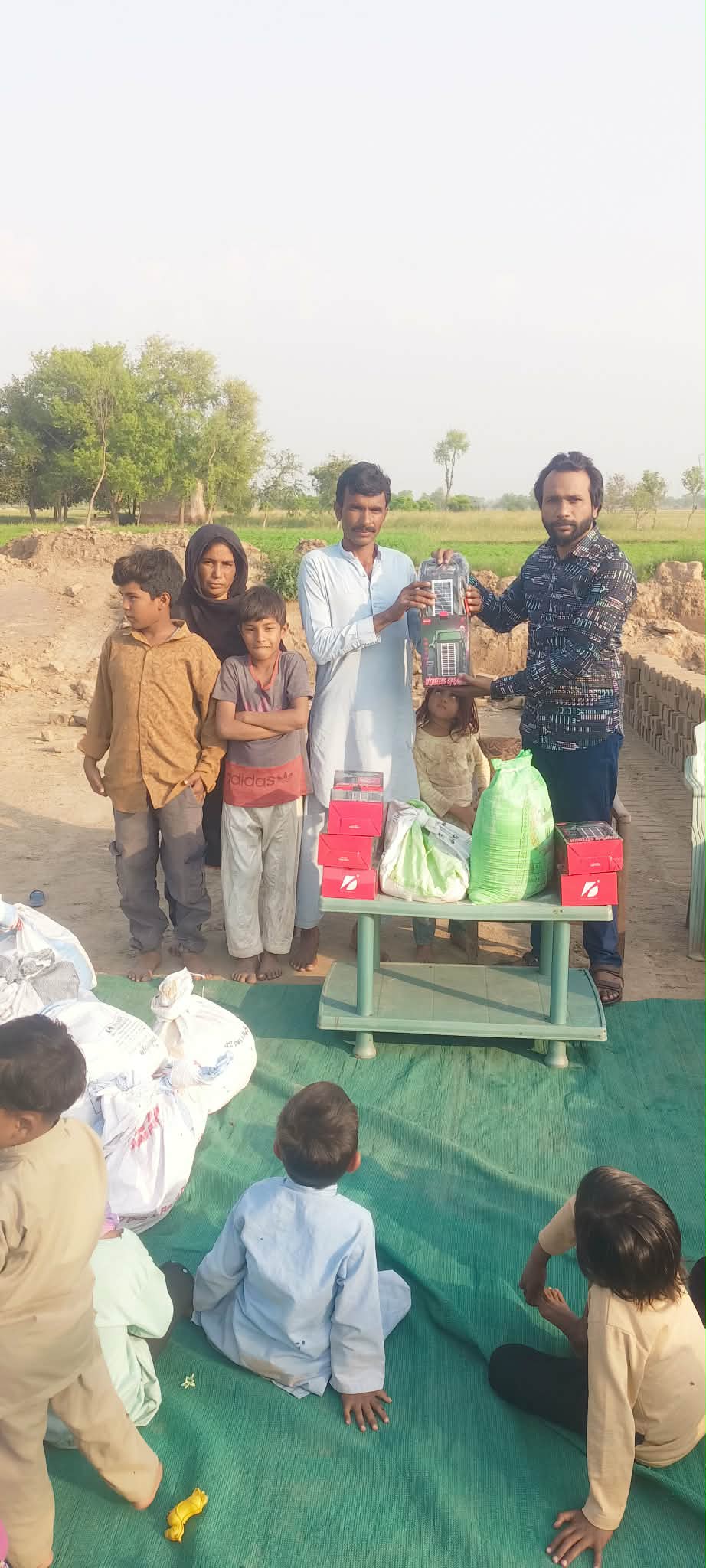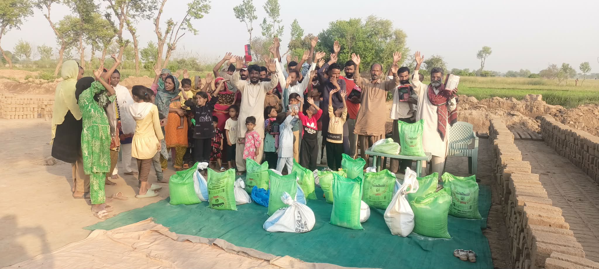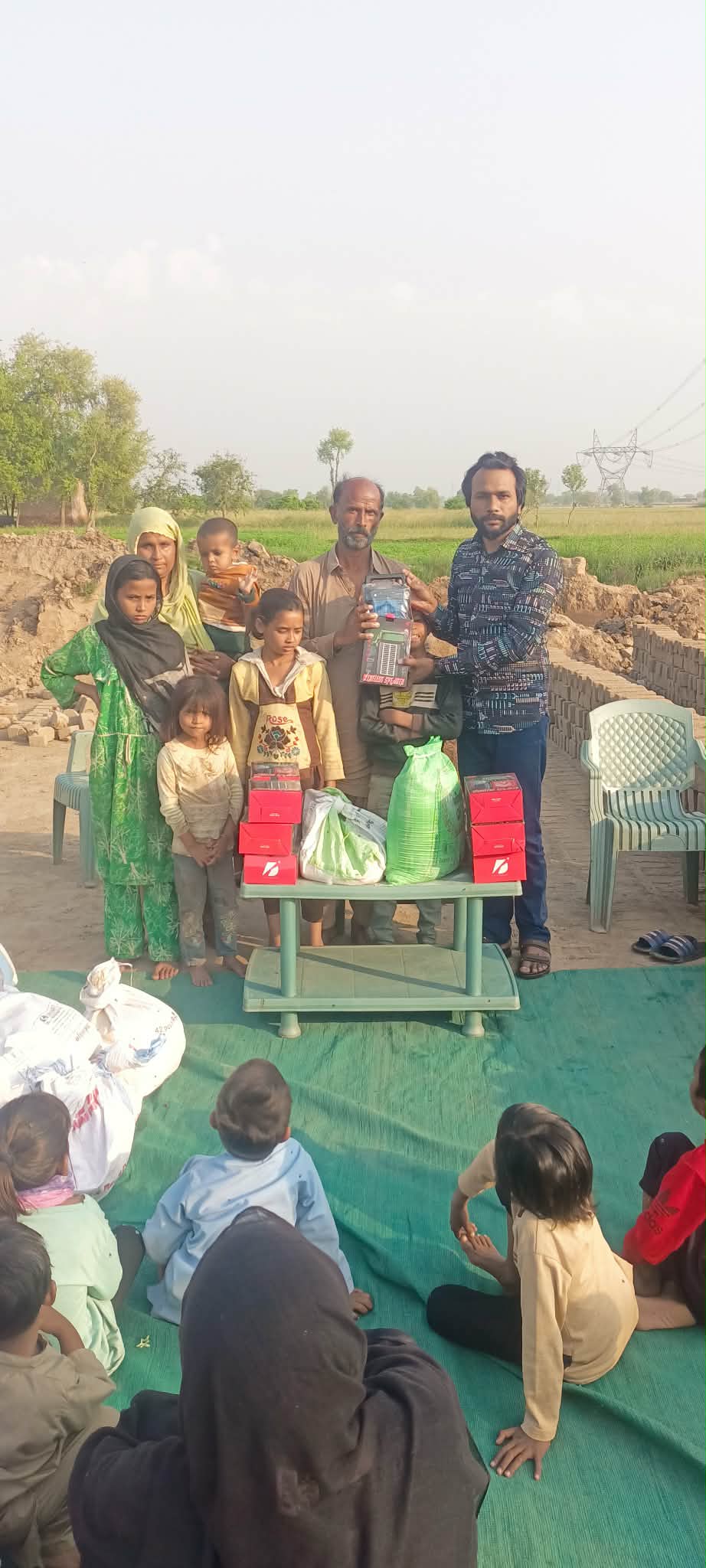 🤝 Rodziny te od czterech miesięcy są pod opieką naszych koordynatorów, Razi i Naeema. Sytuacja w tej cegielni jest wyjątkowo trudna, ponieważ ludzie mieszkają tam w lepiankach nadających się tylko do wyburzenia. Ponadto są wychudzeni i w złym stanie zarówno fizycznym, jak i psychicznym z powodu ciężkiej pracy i braku jakiejkolwiek pomocy z zewnątrz, a ich dzieci, zarówno nastolatkowie jak i maluchy, zmuszane są do ciężkiej pracy przy wyrobie cegieł.😭