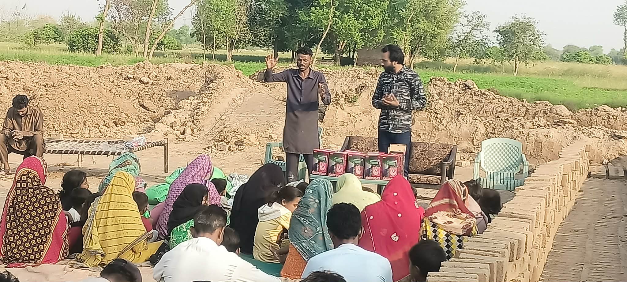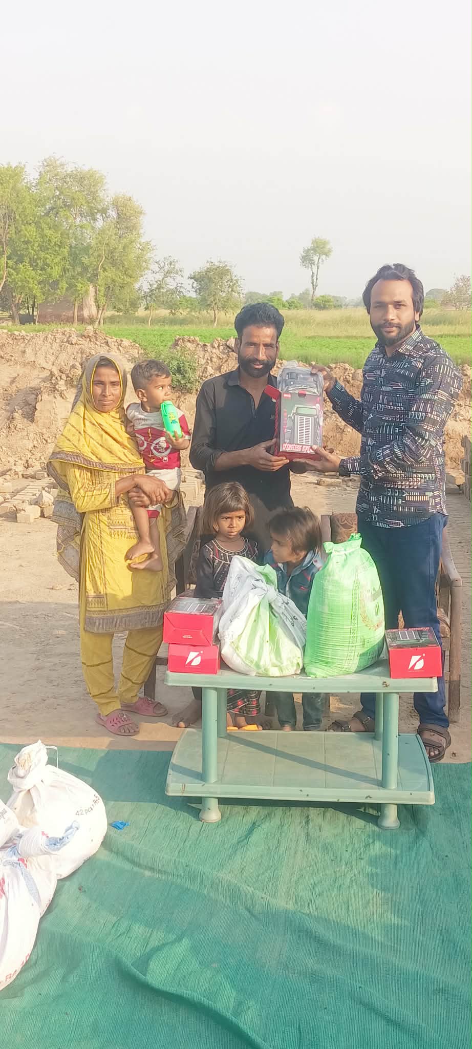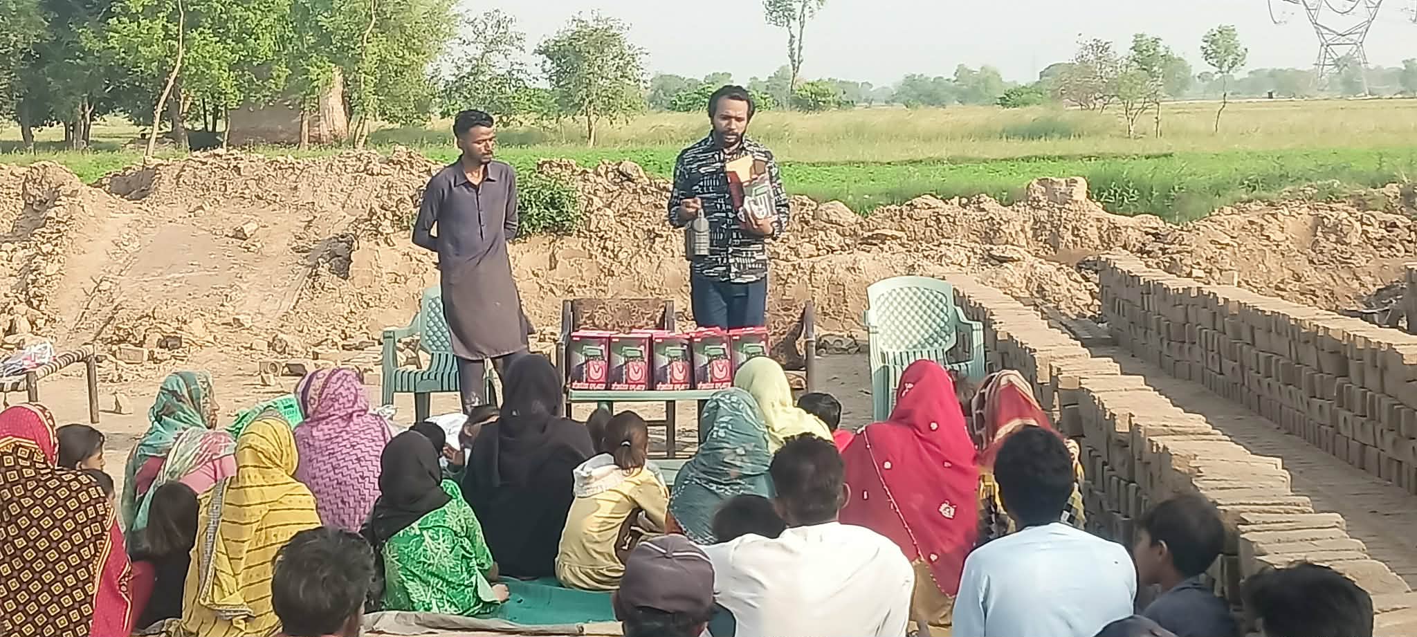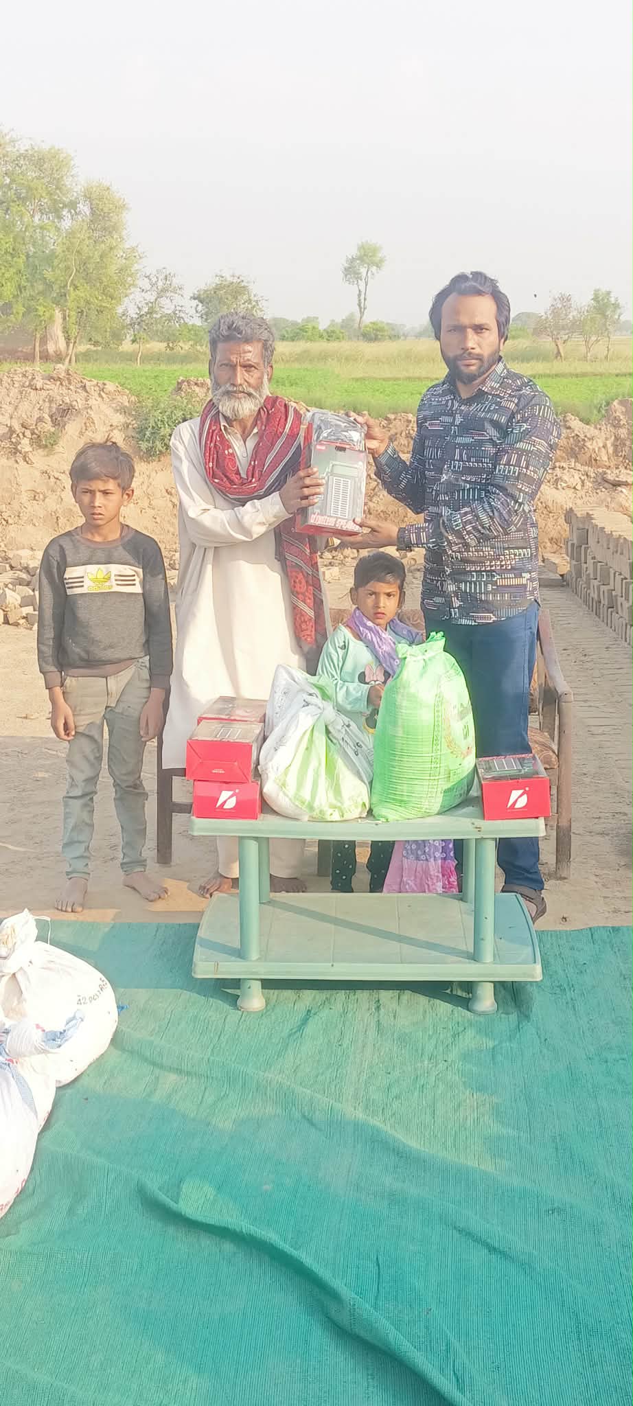 🤝 Rodziny te od czterech miesięcy są pod opieką naszych koordynatorów, Razi i Naeema. Sytuacja w tej cegielni jest wyjątkowo trudna, ponieważ ludzie mieszkają tam w lepiankach nadających się tylko do wyburzenia. Ponadto są wychudzeni i w złym stanie zarówno fizycznym, jak i psychicznym z powodu ciężkiej pracy i braku jakiejkolwiek pomocy z zewnątrz, a ich dzieci, zarówno nastolatkowie jak i maluchy, zmuszane są do ciężkiej pracy przy wyrobie cegieł.😭