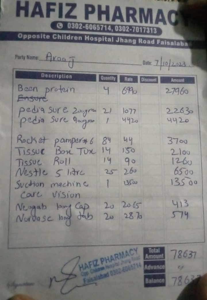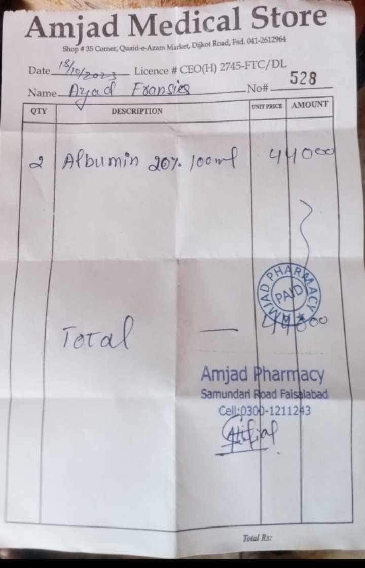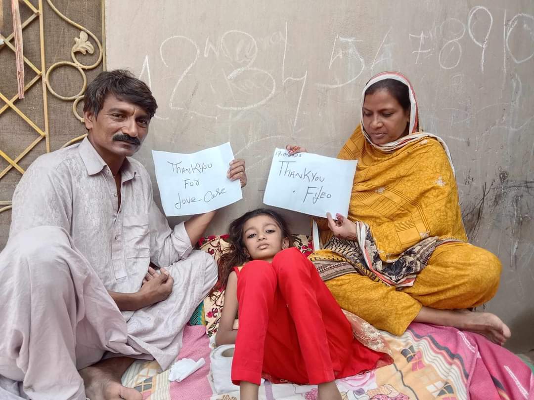 Arooj ma 13 lat i zamieszkiwała w wiosce będącej pod opieką Duszpasterstwa Dobrego Pasterza w Pendżabie. Ponad trzy tygodnie temu zachorowała na tyfus, a kilka dni później jej rodzice – Shenaz i Azaada – zabrali ją do szpitala, ponieważ jej stan był bardzo ciężki. Rodzice zdołali opłacić jej pobyt i leczenie przez 10 dni, ale potem wszystkie ich zapasy pieniędzy się skończyły. Rodzice obydwoje są bezrobotni na skutek masowych zwolnień chrześcijan z pracy przez muzułmanów. Poza tym pobyt i leczenie w szpitalu przekracza nawet dziesięciokrotnie miesięczny zarobek pracownika fizycznego, więc niemożliwością jest dalsze opłacanie szpitala nawet gdyby obydwoje znaleźli pracę (co również jest niemożliwe w świetle ostatnich wydarzeń z Jaranwala).