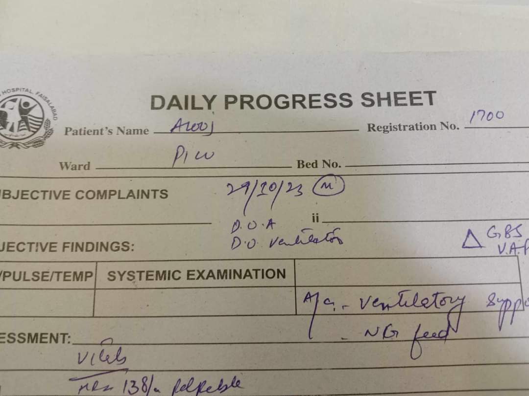 W tej sytuacji rodzice zwrócili się do nas po pomoc i po opłaceniu rachunków ze szpitala, leczenie jest kontunuowanie. Niestety, pięć dni bez wspomagania oddychania i leków wyrządziły ogromne szkody dla osłabionego organizmu, w dodatku dziewczynka zachorowała na zapalenie płuc. Na chwilę obecną lekarze nie wiedzą czy dziecko przeżyje. Jako powikłania zdiagnozowali ostrą zapalną neuropatię obwodową, zwaną zespołem Guillaina-Barego, na skutek której Arooj może umrzeć lub być trwale niepełnosprawna.