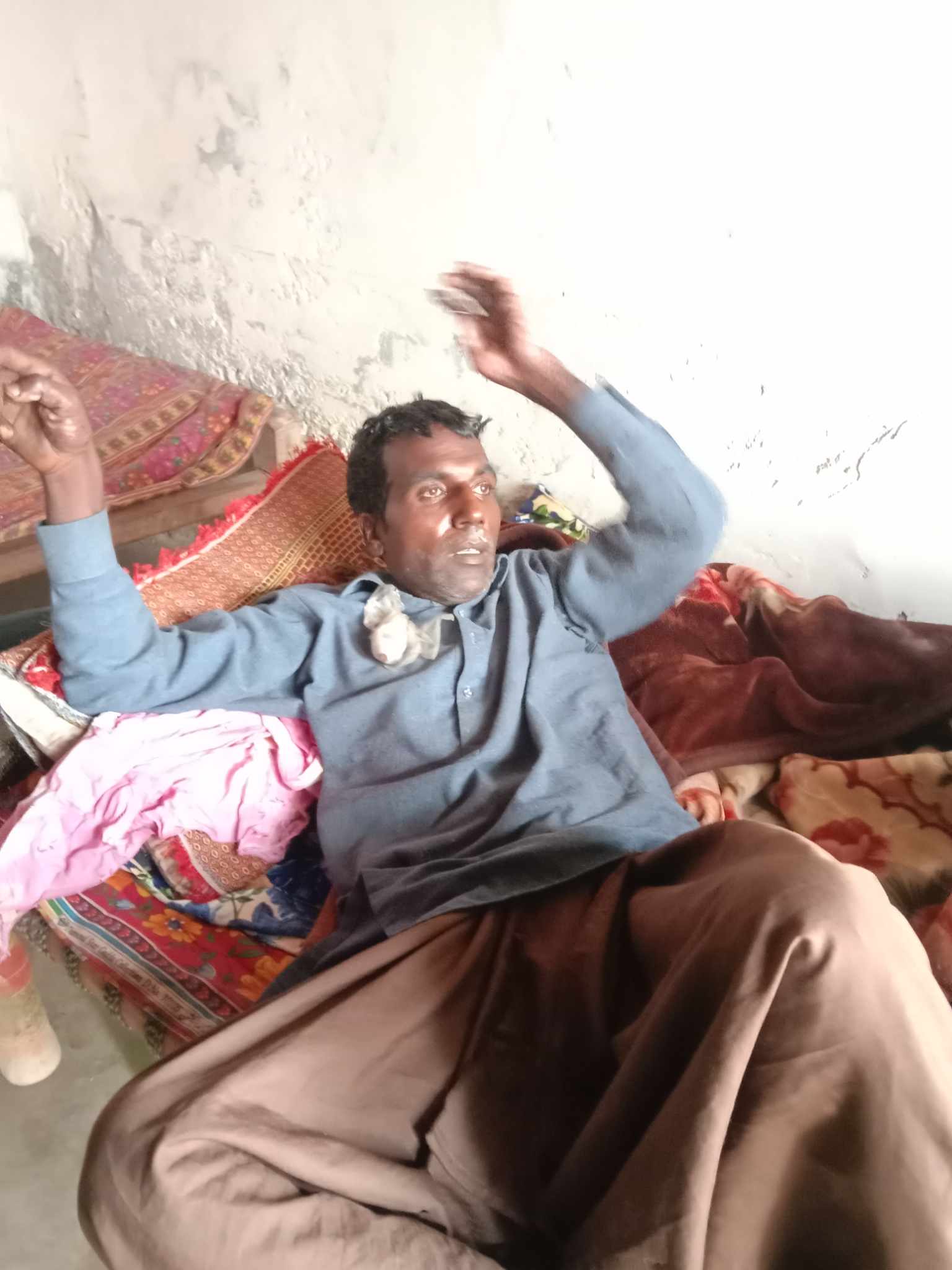 Nie możemy sobie wyobrazić tego okrucieństwa, tym bardziej, że żona poszkodowanego jest w ciąży, a małżeństwo posiada aż pięcioro małych dzieci w wieku od 2 do 8 lat. Na szczęście przyjęła ich pod swój dach matka poszkodowanego, która jest wdową i mieszka sama, ale warunki panujące w mieszkaniu są tragiczne. Niestety, dowiedzieliśmy się o tym dwa tygodnie po wypadku. Niezwłocznie wysłaliśmy pomoc tymczasową dla tej rodziny w wysokości 1000 złotych. Dla Allaysa natychmiast została zamówiona wizyta w szpitalu w Shorkot Cantt. Oczyścili jego rany, wycięli martwe tkanki i zaordynowali antybiotyki oraz środki przeciwbólowe. Codziennie też będzie przyjeżdżał do niego felczer, by zmieniać opatrunki i opiekować się nim. Z wysłanych przez nas pieniędzy zakupiona została także spora ilość jedzenia dla tej rodziny, która nie miała dosłownie nic. Z tych środków mają jeszcze zakupić nowe łóżko dla Allaysa, nowy koc, poduszkę i zestaw pościeli – wszystko to, by stworzyć choremu odpowiednie warunki – a także środki czystości, ponieważ matka poszkodowanego jest tak uboga, że nie ma nawet żadnych środków higienicznych. Nie wiadomo, jak długo będzie trwało leczenie Allaysa, a nawet czy przeżyje, skoro dopiero po ponad dwóch tygodniach od poparzenia udzielono mu właściwej pomocy. Na dodatek właściciel fabryki nie chce anulować ich długu, który w momencie wypadku wynosił około 750 złotych, ale rośnie pomału z dnia na dzień. Żąda, by odrobiła go żona poszkodowanego, pomimo pięciorga małych dzieci i ciąży. Potrzebujemy przede wszystkim pomóc tej rodzinie w przeżyciu, a następnie w spłaceniu długu. W tej sytuacji niestety nie ma w niej ani jednej osoby zdolnej do pracy, więc prawdopodobnie będą potrzebować, by ich wspierać przez dłuższy czas. Dlatego w imieniu żony poszkodowanego, Najmy, a także koordynatorów Duszpasterstwa Dobrego Pasterza, Sajidy i Ashbeela, zwracamy się ponownie do Was, Drodzy Darczyńcy o wpłacanie nawet bardzo skromnych datków na pomoc finansową dla tej rodziny, a także o jakże potrzebną za nich modlitwę. Oprócz funduszy, które teraz wysłaliśmy, w tym miesiącu potrzebują jeszcze do 3000 złotych. Ich najpilniejsze potrzeby na dzień dzisiejszy to: